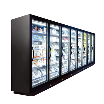Equipos de supermercado Exhibición de carne Puerta de vidrio vertical Congelador enfriador
